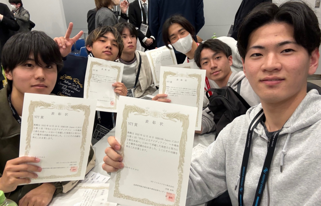 国際半導体展示会 SEMICON Japan(セミコン・ジャパン) の人材育成企画として開催された 「アイディアソン(Ideathon)」 に、本学 情報融合学環チーム(情報融合学環1年生6名) が出場し、NTT賞(企業賞) を受賞しました。
